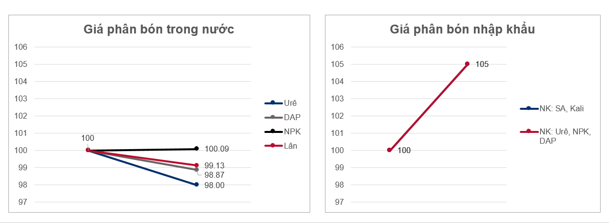 Giá phân urê, DAP, NPK, SA và Kali nhập khẩu tăng. Theo cấu trúc thị trường phân bón hiện tại (tiêu thụ phân bón sản xuất trong nước chiếm 69,2%, tiêu thụ phân bón nhập khẩu chiếm 30,8%), cho phép doanh nghiệp sản xuất phân bón trong nước dẫn dắt điều chỉnh mặt bằng giá thị trường phân bón.