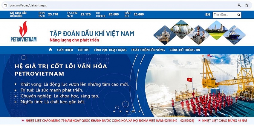 Trang web chính thức của Tập đoàn Dầu khí Việt Nam