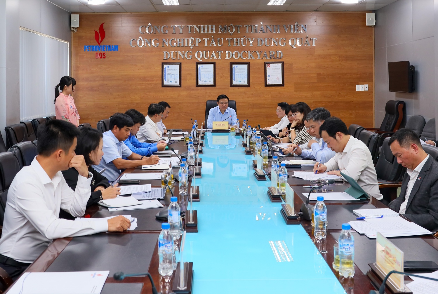 Ngày 28/2, tại trụ sở Công ty công nghiệp Tàu thuỷ Dung Quất (DQS), Chủ tịch HĐTV, Tổng Giám đốc Tập đoàn Dầu khí Việt Nam (Petrovietnam) Lê Mạnh Hùng cùng đoàn công tác đã đến làm việc với đơn vị về chiến lược/kế hoạch phát triển trung, dài hạn và triển khai kế hoạch năm 2024 của DQS. Tại cuộc họp, Chủ tịch HĐTV Petrovietnam đã phân tích về những vướng mắc còn tồn đọng và yêu cầu DQS tập trung vào công tác tái cấu trúc của đơn vị.