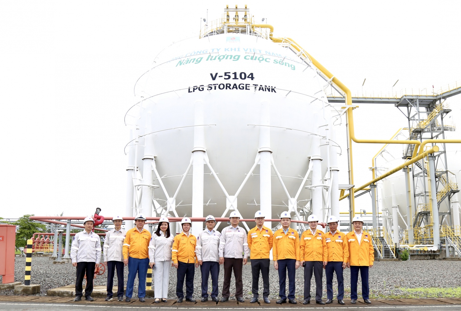 Đoàn công tác chụp ảnh lưu niệm tại Nhà máy Xử lý khí Cà Mau.