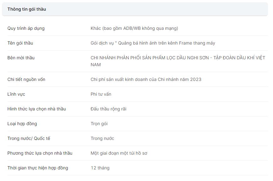 Gói mua sắm “Quảng bá thương hiệu PVNDB trên kênh Frame thang máy”