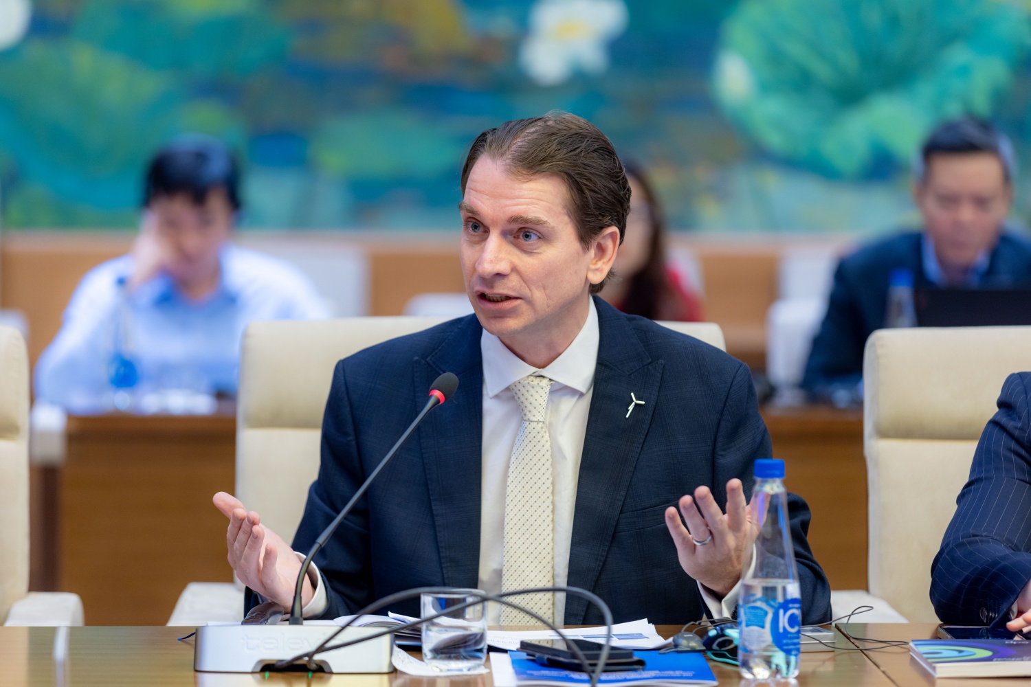 Phó Chủ nhiệm Ủy ban Đối ngoại Nguyễn Mạnh Tiến hoan nghênh phía Đan Mạch đưa ra những khuyến nghị chính sách nhằm thúc đẩy tiến trình chuyển dịch năng lượng xanh ở Việt Nam; đề nghị các đại biểu trao đổi cởi mở, đóng góp ý kiến cụ thể, thiết thực nhằm cung cấp thêm thông tin hữu ích cho các cơ quan của Quốc hội nghiên cứu tiếp thu, chỉnh lý và hoàn thiện dự thảo Luật.