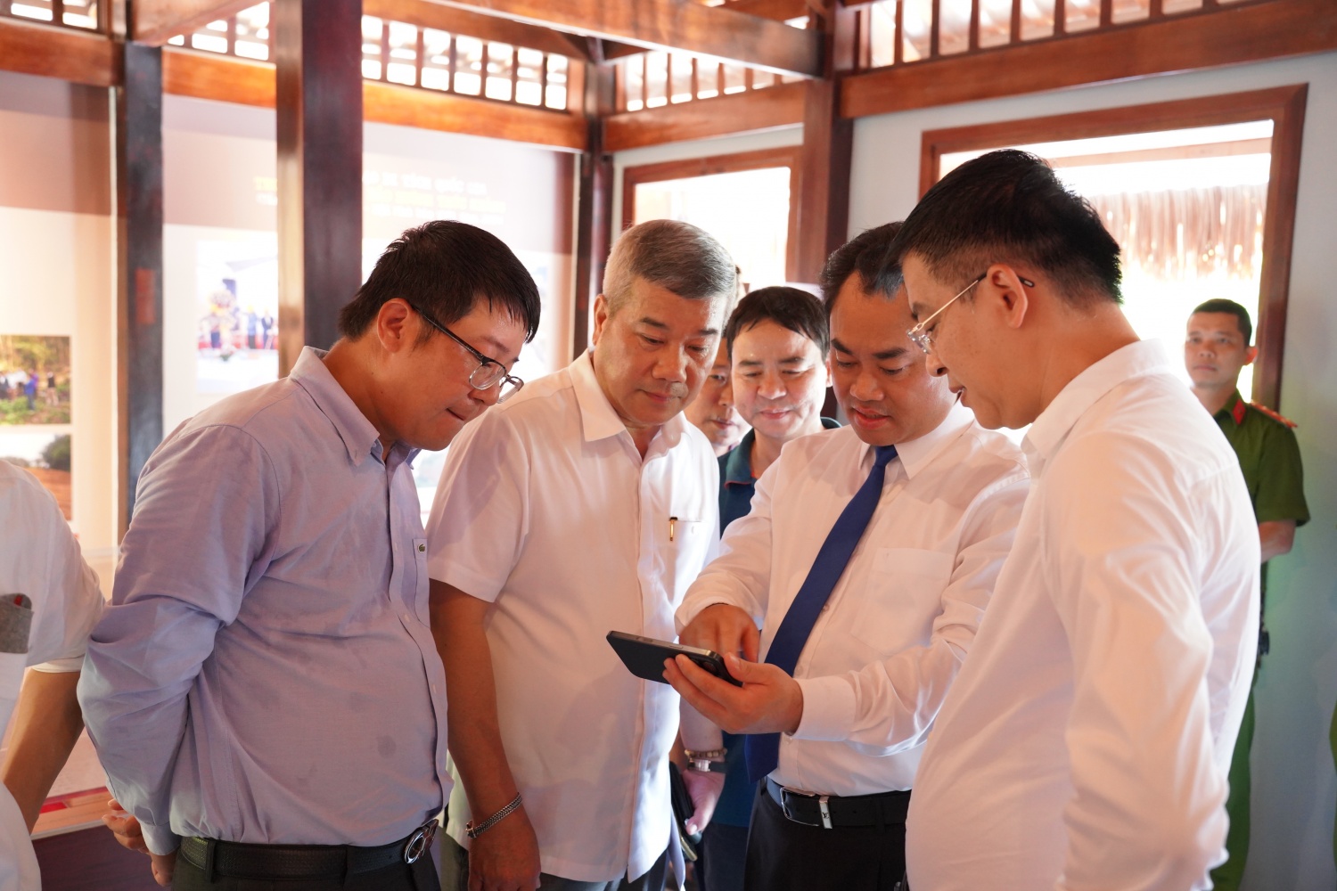 Đồng chí Đỗ Chí Thanh - Phó Tổng Giám đốc Petrovietnam nghe giới thiệu về di tích.