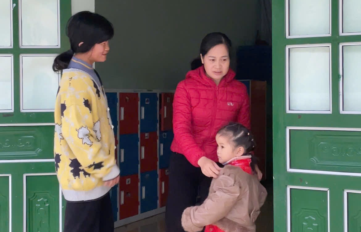 Từ ngày điểm trường được tu sửa, chị Lý Thị Mùi hoàn toàn yên tâm và phấn khởi khi đưa con tới trường