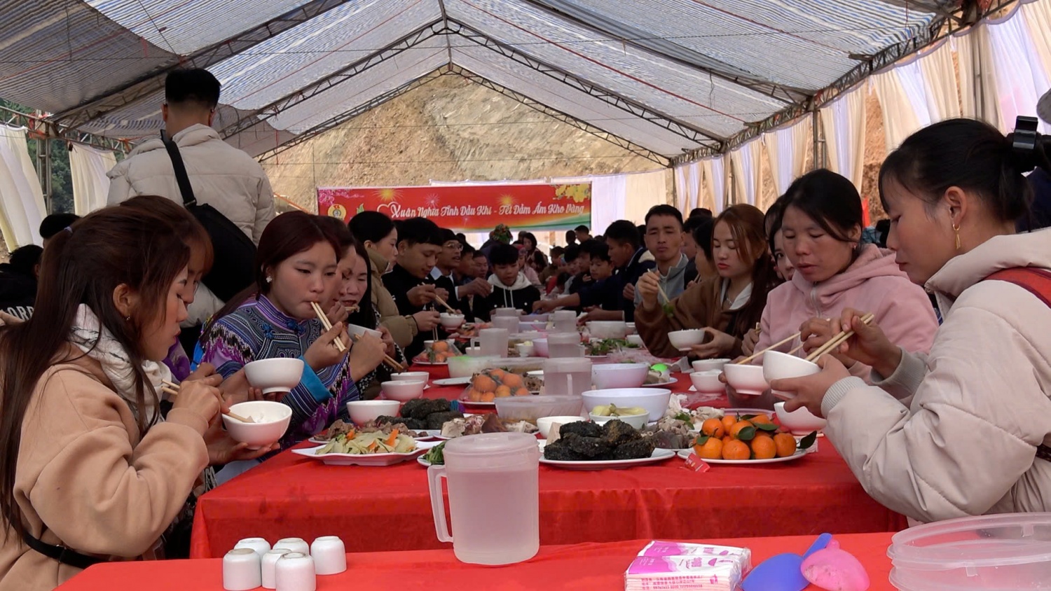 Trong không khí đầm ấm, Công đoàn Dầu khí và Petrovietnam đã cùng bà con nơi đây đón Tết nguyên đán Ất Tỵ 2025, đón mùa xuân mới đầu tiên trên mảnh đất vừa hồi sinh này. Không khí hân hoan của chương trình thể hiện qua lời ca tiếng hát đặc sắc đậm chất núi rừng Tây Bắc, các trò chơi dân gian, văn hóa của người Mông, người Dao và bữa cơm cuối năm ấm cúng của toàn thể bà con với người Dầu khí.