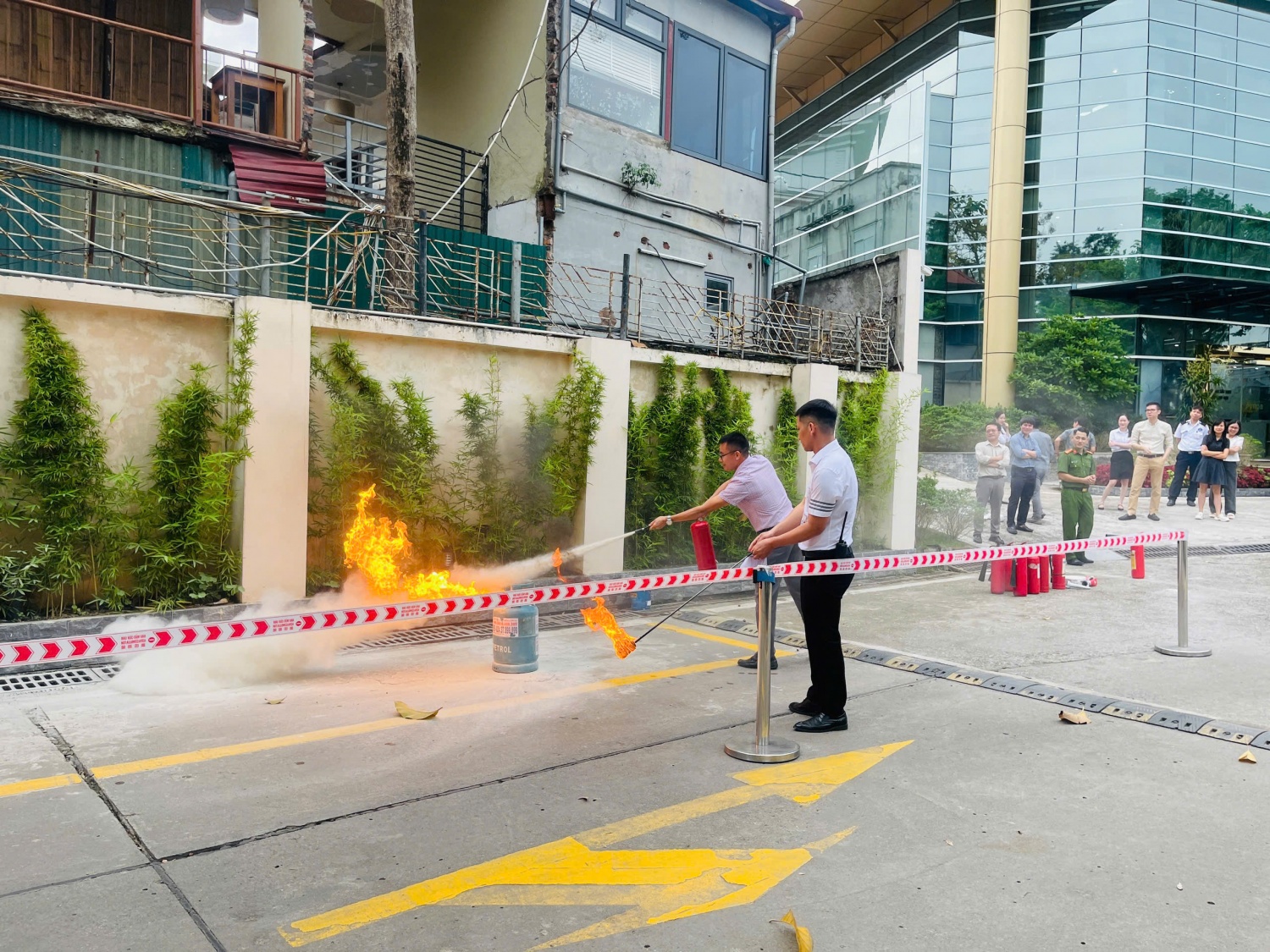 Sau phần học lý thuyết, cán bộ, nhân viên Chi nhánh đã được tham gia diễn tập, hướng dẫn thực hành các kỹ năng quan trọng như: sử dụng bình chữa cháy xách tay (bình bột, bình CO₂), dập tắt đám cháy giả định (khay xăng, bình gas rò rỉ), thao tác cứu người bị nạn trong môi trường khói độc, sử dụng dây thừng, thang dây, mặt nạ phòng độc... Tình huống thực hành được mô phỏng sát với thực tế, giúp xử lý linh hoạt và tăng khả năng phản xạ khi có sự cố xảy ra.
