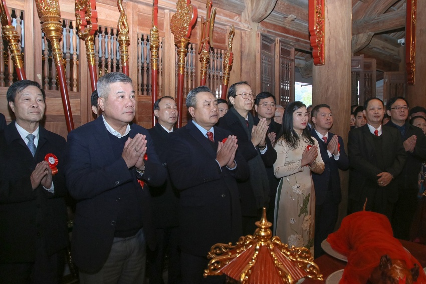 Trong khuôn khổ buổi lễ, các đại biểu đã thực hiện nghi thức cắt băng khánh thành đền Chi Lăng.