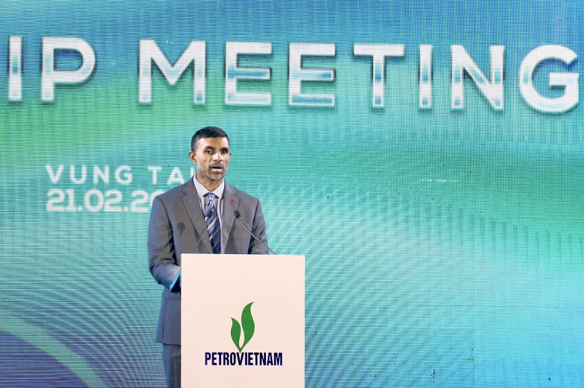 Ông Ravi Meka - Giám đốc Công ty Murphy Cuu Long Tay Oil, đại diện cho Murphy, PVEP, SK Earthon và tất cả các Nhà thầu/Người Điều hành, nhấn mạnh tầm quan trọng của sự hợp tác trong lĩnh vực dầu khí tại Việt Nam. Ông đề cập đến những thành công trong năm 2024, đặc biệt là quyết định đầu tư cuối cùng (FID) cho dự án Lô 15-1/05 Lạc Đà Vàng vào cuối năm 2023 và chương trình khoan phát triển mỏ dự kiến trong năm 2025 nhằm đạt dòng dầu thương mại vào năm 2026. Ngoài ra, ông cũng đề cập đến phát hiện mới tại triển vọng Hải Sư Vàng (Lô 15-2/17) và giếng thăm dò Lạc Đà Hồng.