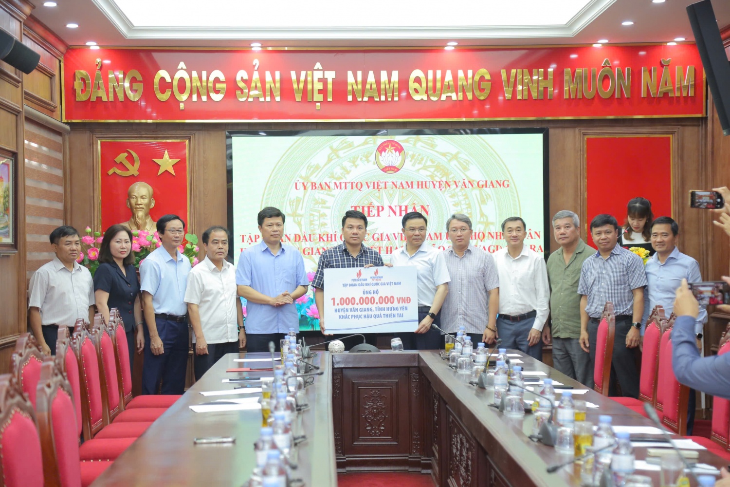 Lãnh đạo Petrovietnam trao ủng hộ tới Ủy ban Mặt trận Tổ quốc Việt Nam tỉnh Hưng Yên.
