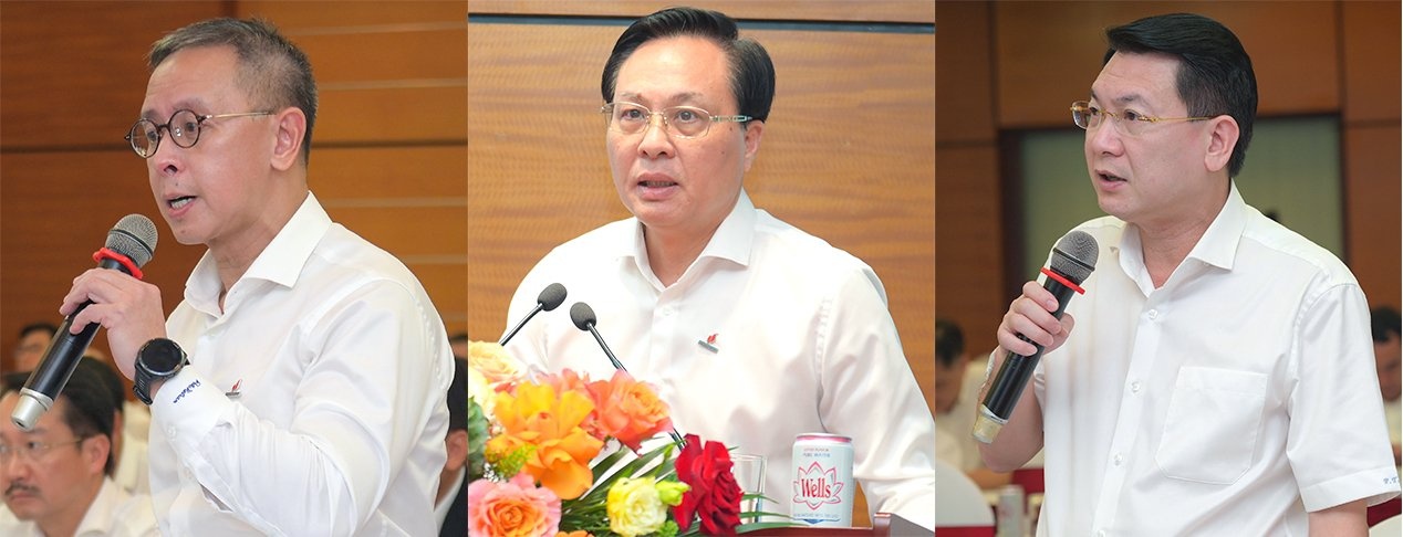 Các đồng chí Thành viên HĐTV Petrovietnam Trần Bình Minh, Bùi Minh Tiến, Phạm Tuấn Anh phát biểu