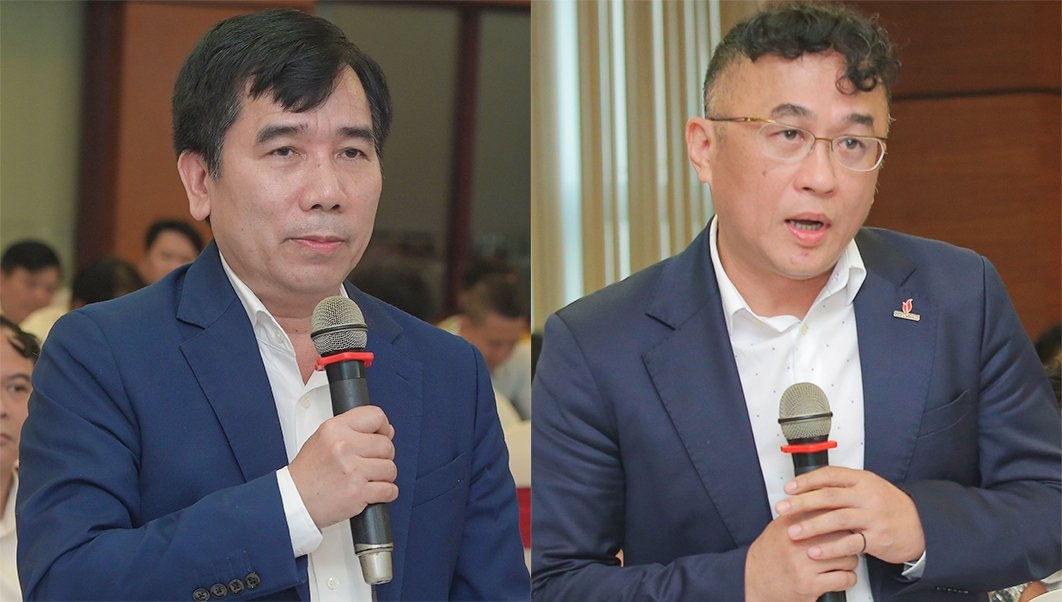 Các đồng chí Phó Tổng Giám đốc Petrovietnam Lê Xuân Huyên, Phan Tử Giang phát biểu