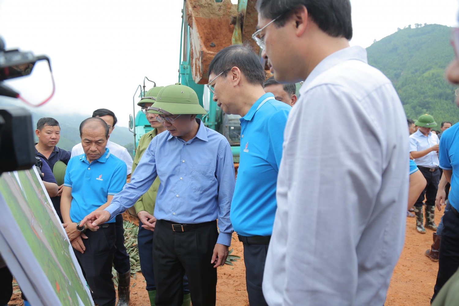 Lãnh đạo tỉnh Lào Cai giới thiệu với lãnh đạo Tập đoàn về dự kiến khu vực xây dựng khu ở mới cho dân cư thôn Kho Vàng.