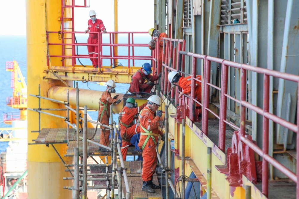 Người lao động dầu khí đang làm việc trên giàn khoan.