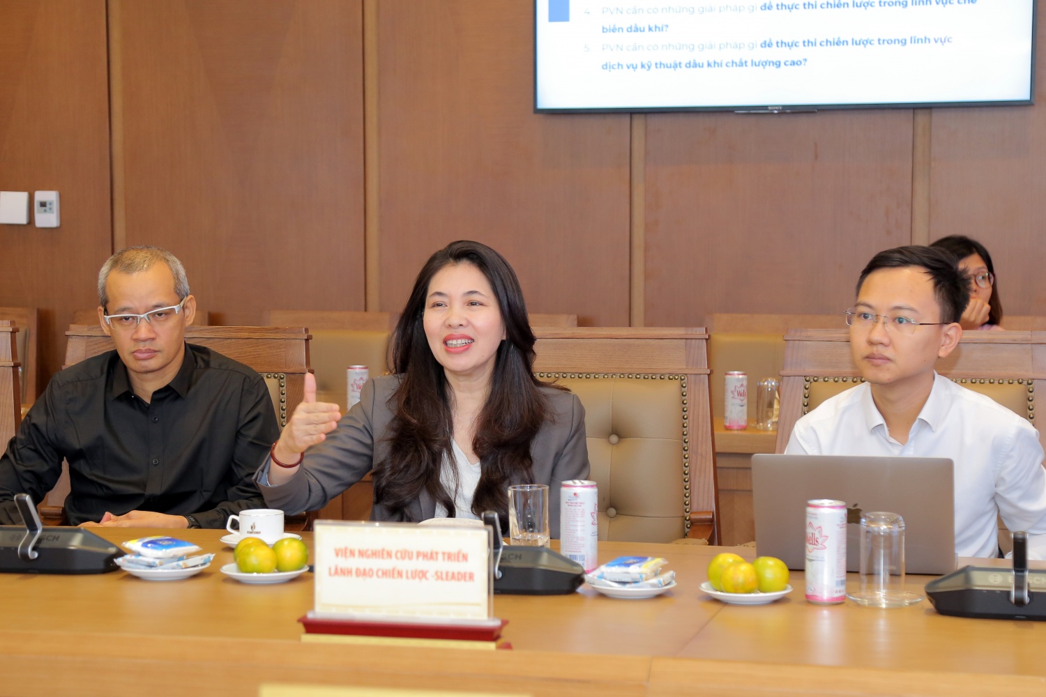Tại buổi làm việc, TS. Dương Thu, Viện trưởng SLEADER đã giới thiệu, thông tin tới lãnh đạo Tập đoàn về công nghệ đồng hợp Malik và đề xuất một số hướng áp dụng trong triển khai xây dựng chiến lược tại Petrovietnam.