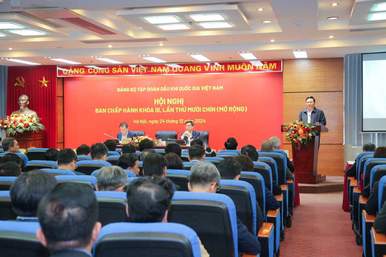 Bước vào thực hiện nhiệm vụ năm 2024, mặc dù Tập đoàn được Đảng, Nhà nước quan tâm, tháo gỡ nhiều vướng mắc về cơ chế, chính sách, thể chế, luật pháp; tuy nhiên, vẫn phải đối diện với khó khăn khách quan do áp lực cạnh tranh, sự biến động của thị trường, giá dầu, những tồn tại từ giai đoạn trước đã tập trung tháo gỡ nhưng chưa đạt được kết quả như mong muốn. Năm 2024 cũng là năm thứ tư triển khai thực hiện Nghị quyết nhiệm kỳ 2020-2025, toàn Đảng bộ thực hiện mục tiêu “Quản trị biến động, bổ sung động lực mới, làm mới động lực cũ, tạo nguồn năng lượng mới, vươn tới đỉnh cao mới” tập trung nâng cao hiệu quả (chất lượng, tiến độ), tổ chức thực hiện các mục tiêu, nhiệm vụ trọng tâm, hướng đến hoàn thành vượt mức các chỉ tiêu, nhiệm vụ Nghị quyết Đại hội Đảng bộ Tập đoàn đã đề ra.