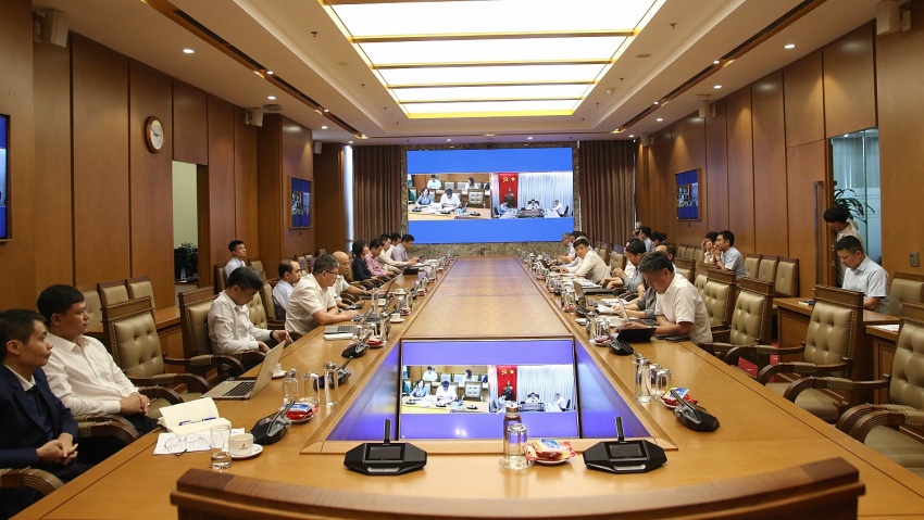 Văn phòng Tập đoàn và các ban chuyên môn Tập đoàn tham dự cuộc họp tại điểm cầu Hà Nội.