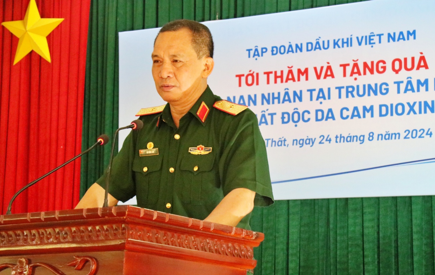 Ghi nhận những món quà ý nghĩa của Petrovietnam, Thiếu tướng Đỗ Hồng Lâm, Phó Chủ tịch Trung ương Hội Nạn nhân chất độc da cam/dioxin Việt Nam cho biết, việc chung tay chăm sóc, hỗ trợ các nạn nhân chất độc màu da cam là điều mà lúc sinh thời Chủ tịch Hồ Chí Minh mong muốn.
