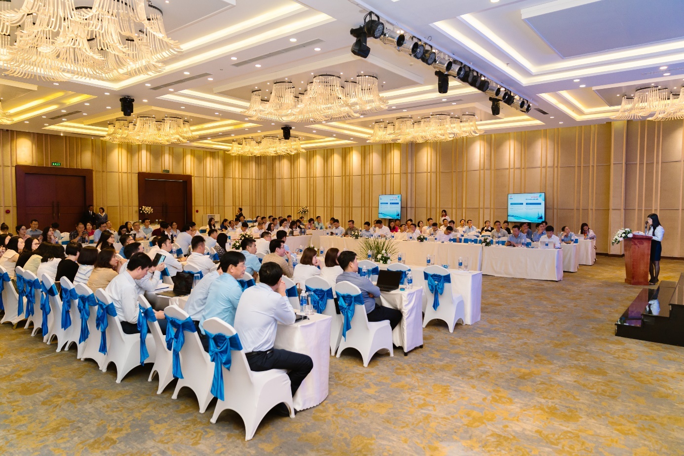 Bà Vũ Tuyết Thanh Hà, Phó Trưởng ban Quản trị nguồn nhân lực Tập đoàn trình bày báo cáo tại Hội nghị