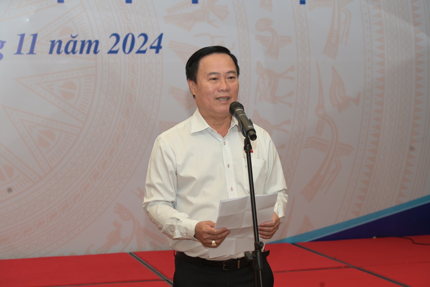 Đồng chí Nguyễn Quốc Hận phát biểu tại buổi gặp mặt