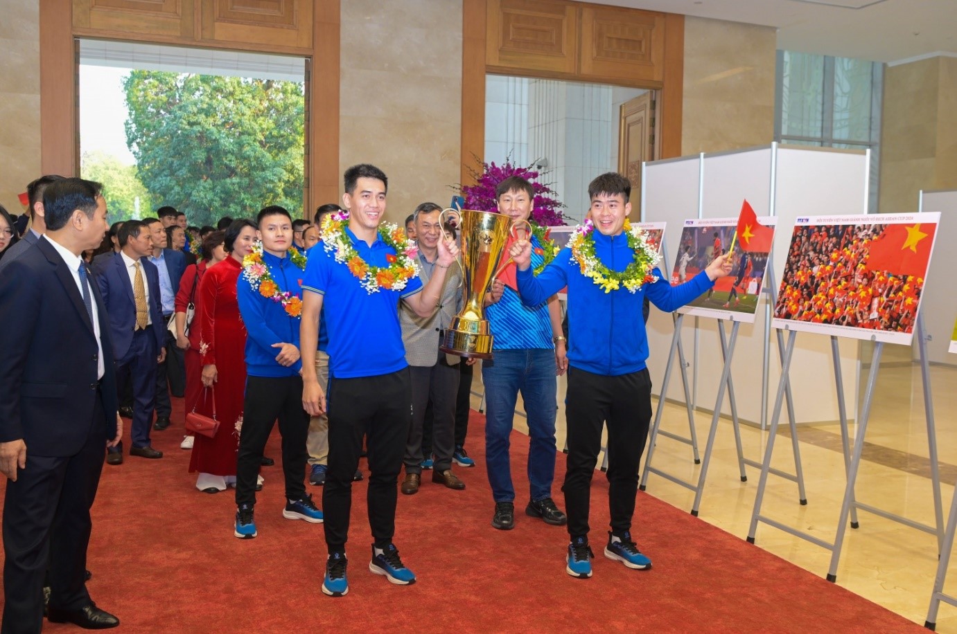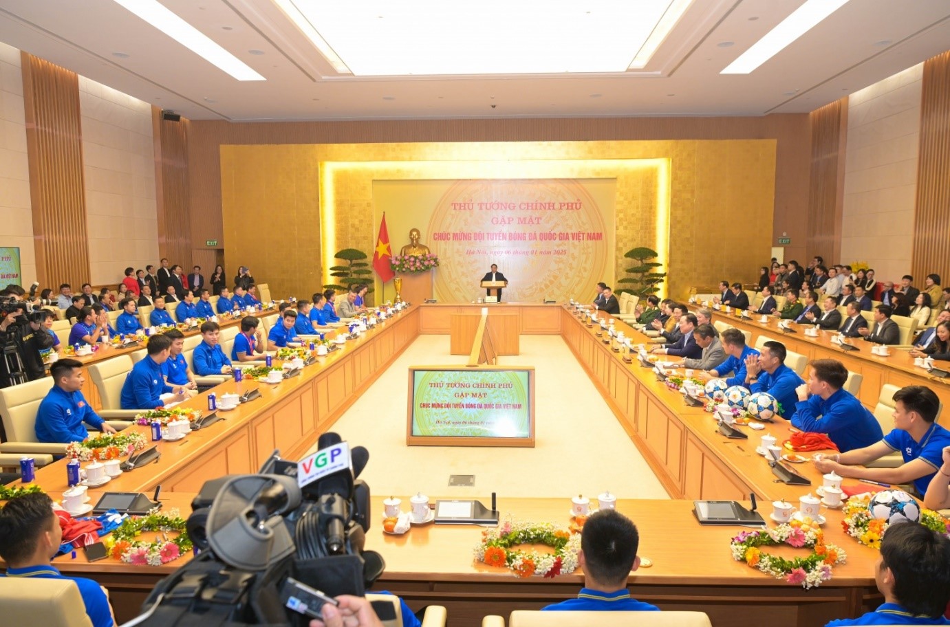 Phát biểu tại buổi gặp mặt, thay mặt Tổng Bí thư Tô Lâm, Chủ tịch nước Lương Cường, Chủ tịch Quốc hội Trần Thanh Mẫn, Thường trực Ban Bí thư Trần Cẩm Tú và lãnh đạo Đảng, Nhà nước, Thủ tướng Phạm Minh Chính chúc mừng và gửi lời cảm ơn đội tuyển, các thế hệ cầu thủ, huấn luyện viên, thành viên đội tuyển Việt Nam vì đã mang về chiến thắng vẻ vang, cống hiến một trận cầu đỉnh cao, kịch tích giữa hai đội bóng mạnh nhất Đông Nam Á.