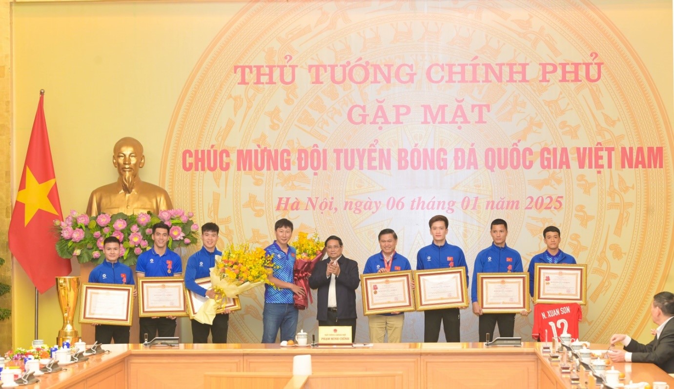 Tại cuộc gặp, Thủ tướng Phạm Minh Chính đã thay mặt lãnh đạo Đảng, Nhà nước trao tặng Huân chương Lao động hạng Nhất cho đội tuyển. Các cầu thủ Nguyễn Xuân Son, Đỗ Duy Mạnh, Nguyễn Quang Hải, Nguyễn Tiến Linh, Nguyễn Hoàng Đức, Nguyễn Đình Triệu được Chủ tịch nước tặng thưởng Huân chương Lao động hạng Ba.