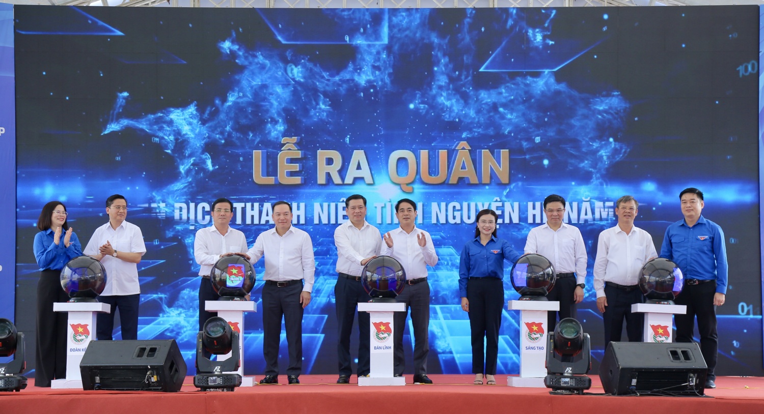 Các đại biểu thực hiện nghi lễ ra quân chiến dịch thanh niên tình nguyện hè năm 2024