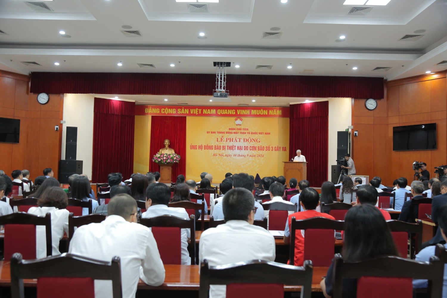 Tại buổi lễ, đồng chí Đỗ Văn Chiến, Ủy viên Bộ Chính trị, Bí thư Trung ương Đảng, Chủ tịch Ủy ban Trung ương Mặt trận Tổ quốc Việt Nam đã phát động quyên góp ủng hộ đồng bào bị thiệt hại do bão số 3 gây ra.