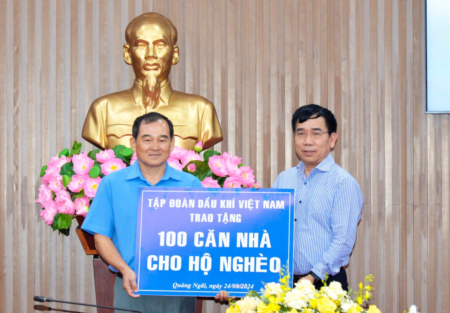 Cũng tại buổi làm việc, các tập đoàn, tổng công ty đã trao tặng 300 căn nhà tình nghĩa cho hộ nghèo trên địa bàn tỉnh Quảng Ngãi. Trong đó, Petrovietnam trao tặng 100 căn nhà.