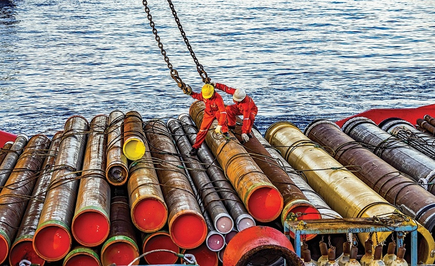 Người lao động dầu khí làm việc trên công trình biển