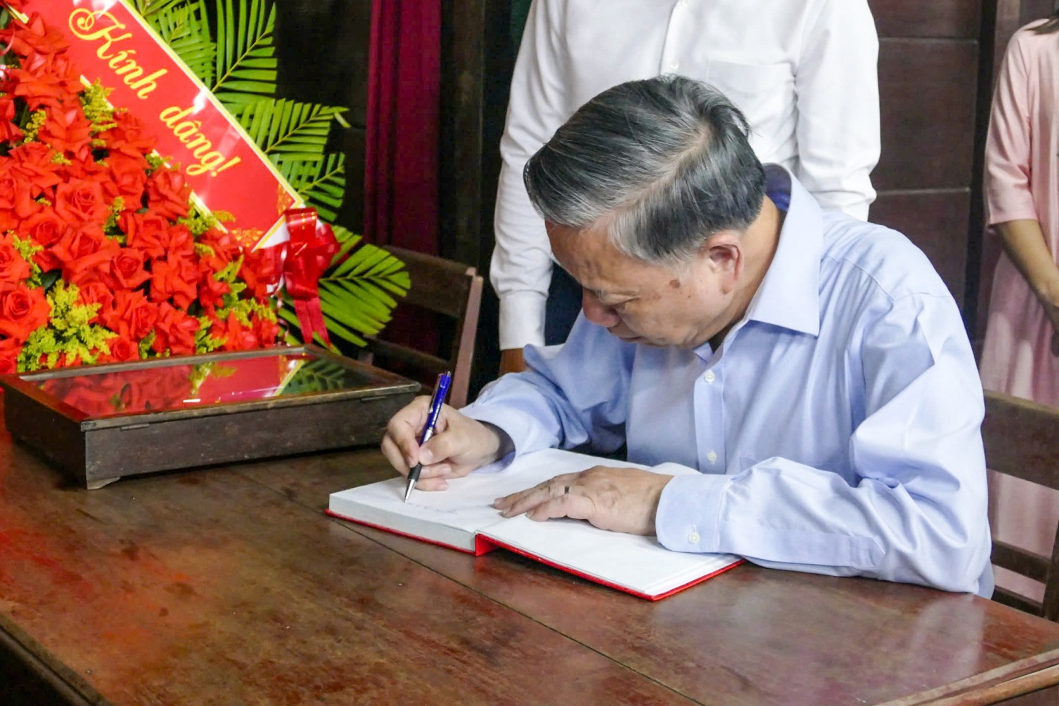 Đồng chí Tô Lâm - Tổng Bí thư, Chủ tịch nước CHXHCN Việt Nam viết lưu bút tại Khu lưu niệm Tổng Bí thư Lê Duẩn.