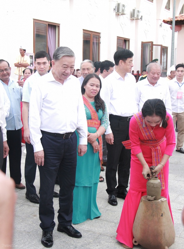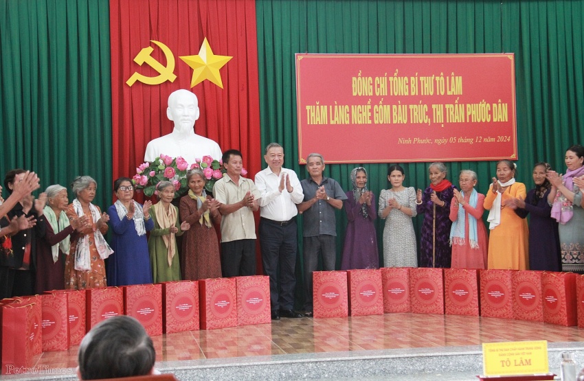 Cũng trong dịp này, Tổng Bí thư đã đến thăm Làng gốm Bàu Trúc (thị trấn Phước Dân, huyện Ninh Phước).