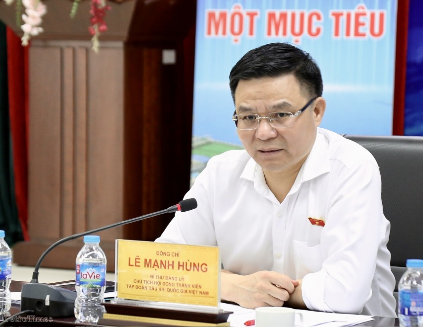 Ông Lê Mạnh Hùng - Chủ tịch HĐTV Petrovietnam và ông Lê Ngọc Sơn - Tổng Giám đốc Petrovietnam chủ trì buổi làm việc; cùng sự tham dự của ông Phạm Tuấn Anh - Thành viên HĐTV Tập đoàn; lãnh đạo các ban chuyên môn/Văn phòng Tập đoàn.