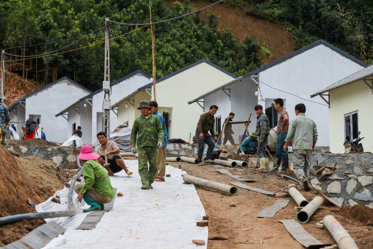 Ngay trong đêm 13/12, con đường nội khu đã được đổ bê tông, kết nối đến từng hộ dân, tạo điều kiện thuận lợi để người dân nhanh chóng ổn định cuộc sống mới.