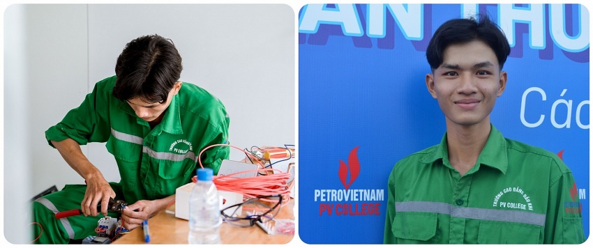 Thí sinh Phạm Văn Điền, sinh viên năm 2 ngành Công nghiệp điện - Trường Cao đẳng Dầu khí (PV College) dự thi môn Lắp đặt điện là thí sinh nhỏ tuổi nhất của Hội thi tay nghề Dầu khí năm nay. Chia sẻ về cảm xúc sau khi tham gia Hội thi, Điền hào hứng: “Đây là lần đầu tiên tôi tham gia Hội thi lớn của Tập đoàn nên lúc đầu có phần thiếu tự tin, run và làm còn chậm. Sau đó, tôi đã ổn định lại và vững vàng hơn nhưng hơi tiếc khi còn thiếu một cọng dây cáp nữa là hoàn thành bài thi. Khi được thầy cô giáo tạo điều kiện và hướng dẫn nhiệt tình cũng như động viên, tôi đã quyết tâm tham gia Hội thi để được trải nghiệm, học hỏi và có thêm nhiều kiến thức mới, nâng cao tay nghề của mình cũng như nhận định được trình độ mình tới đâu. Khi tham gia Hội thi, tôi có cơ hội được học hỏi được từ các anh, các chị trong ngành rất nhiều kiến thức bổ ích, giúp tôi có thêm nhiều kinh nghiệm hơn. Tôi thấy khâu tổ chức Hội thi rất bài bản, công tác chuẩn bị chu đáo và được đầu tư nhiều. Không chỉ vậy, thí sinh cũng được hỗ trợ hết sức tận tình trong quá trình thực hiện bài thi”.