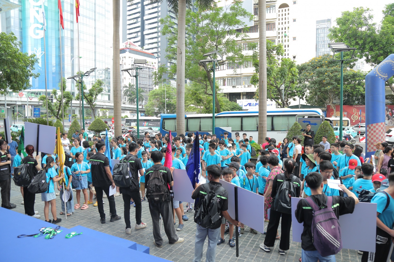 Sau khi kết thúc lễ khai mạc, các em xếp hàng theo team lên xe để xuất phát
