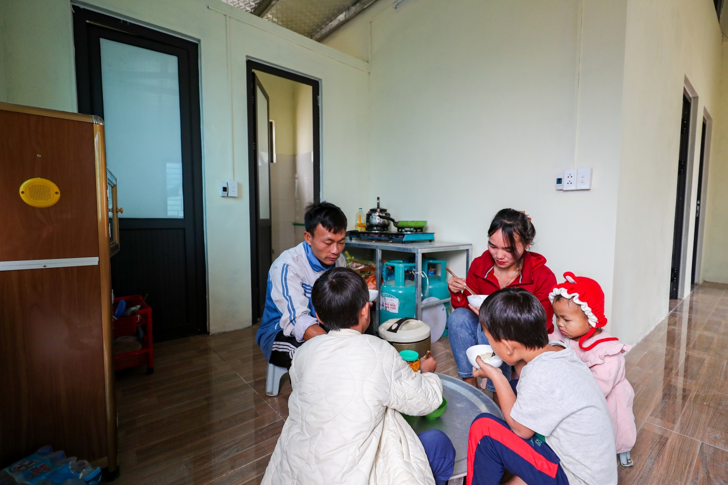Bữa cơm đầu tiên của gia đình anh Dứ ở nhà mới. Đơn sơ, đạm bạc nhưng ấm cúng, an toàn, sạch sẽ.