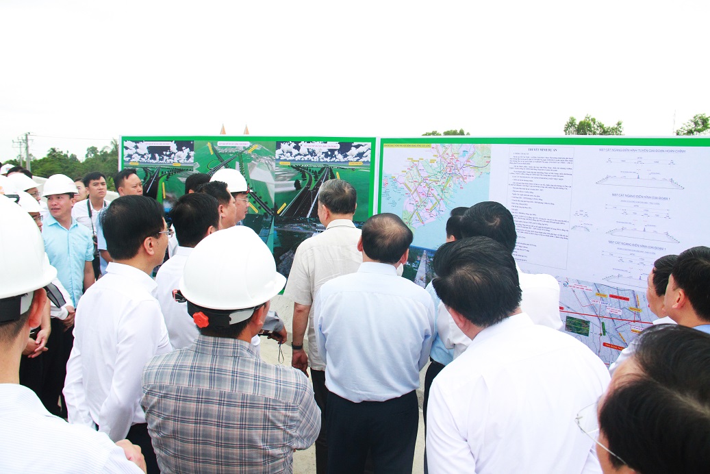 Tổng Bí thư và Đoàn Công tác Trung ương khảo sát công trình thi công dự án cao tốc Cao Lãnh - An Hữu.