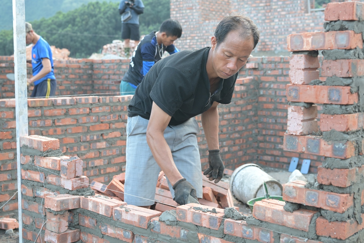 Những người thợ tiến hành xây tường sau khi hoàn thiện móng