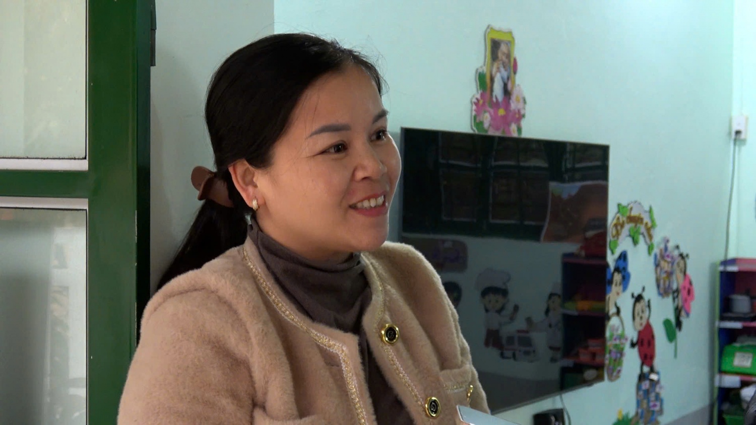 Từ ngày điểm trường được tu sửa, chị Lý Thị Mùi hoàn toàn yên tâm và phấn khởi khi đưa con tới trường