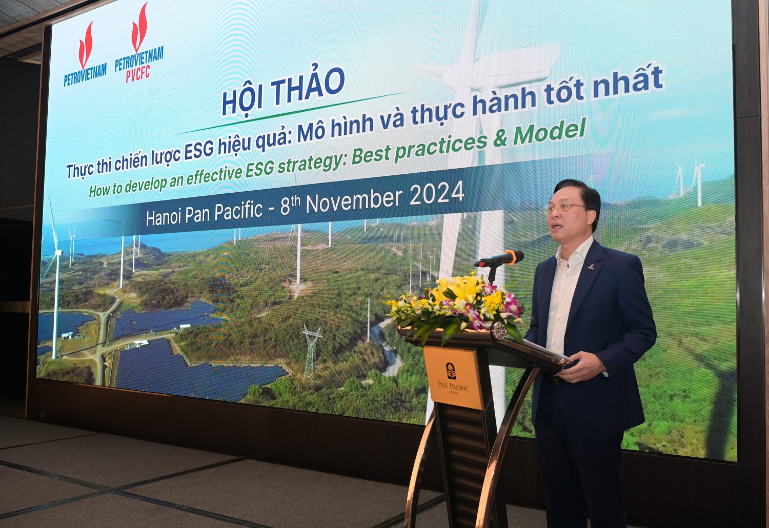 Phát biểu khai mạc Hội thảo, ông Bùi Minh Tiến cho biết: "Trong bối cảnh toàn cầu đang phải đối mặt với những thách thức nghiêm trọng vế biến đổi khí hậu, vai trò của việc thực hiện ESG trở nên quan trọng và cấp thiết. Đối với Petrovietnam - Tập đoàn kinh tế nhà nước hàng đầu trong ngành năng lượng thì việc xây dựng và triển khai chiến lược ESG không chỉ là điều cần thiết mà còn là sứ mệnh chúng ta cam kết thực hiện vì sự phát triển của các doanh nghiệp và cộng đồng. Trong những năm qua, Petrovietnam đã nỗ lực không ngừng để thực hiện đưa ESG vào mọi hoạt động của Tập đoàn như quản trị doanh nghiệp, quản trị môi trường, chăm lo đời sống cho người lao động. Tuy nhiên, sự phức tạp và khác biệt trong quy mô, mô hình hoạt động của Petrovietnam và các đơn vị thành viên đòi hỏi chiến lược ESG đồng bộ nên cần phải có những giải pháp để phù hợp với hoàn cảnh hiện nay".