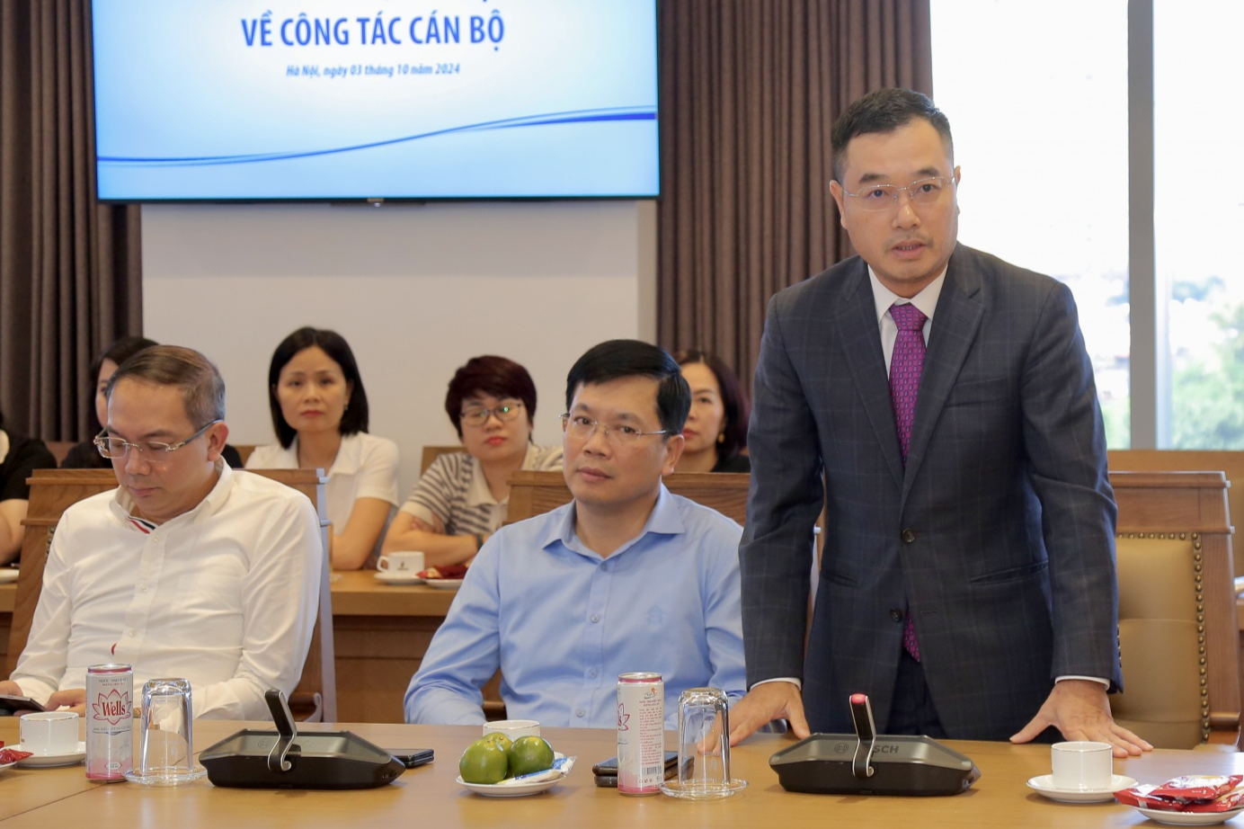 Đồng chí Trịnh Việt Thắng, tân Trưởng Ban Quản lý Hợp đồng dầu khí phát biểu nhận nhiệm vụ