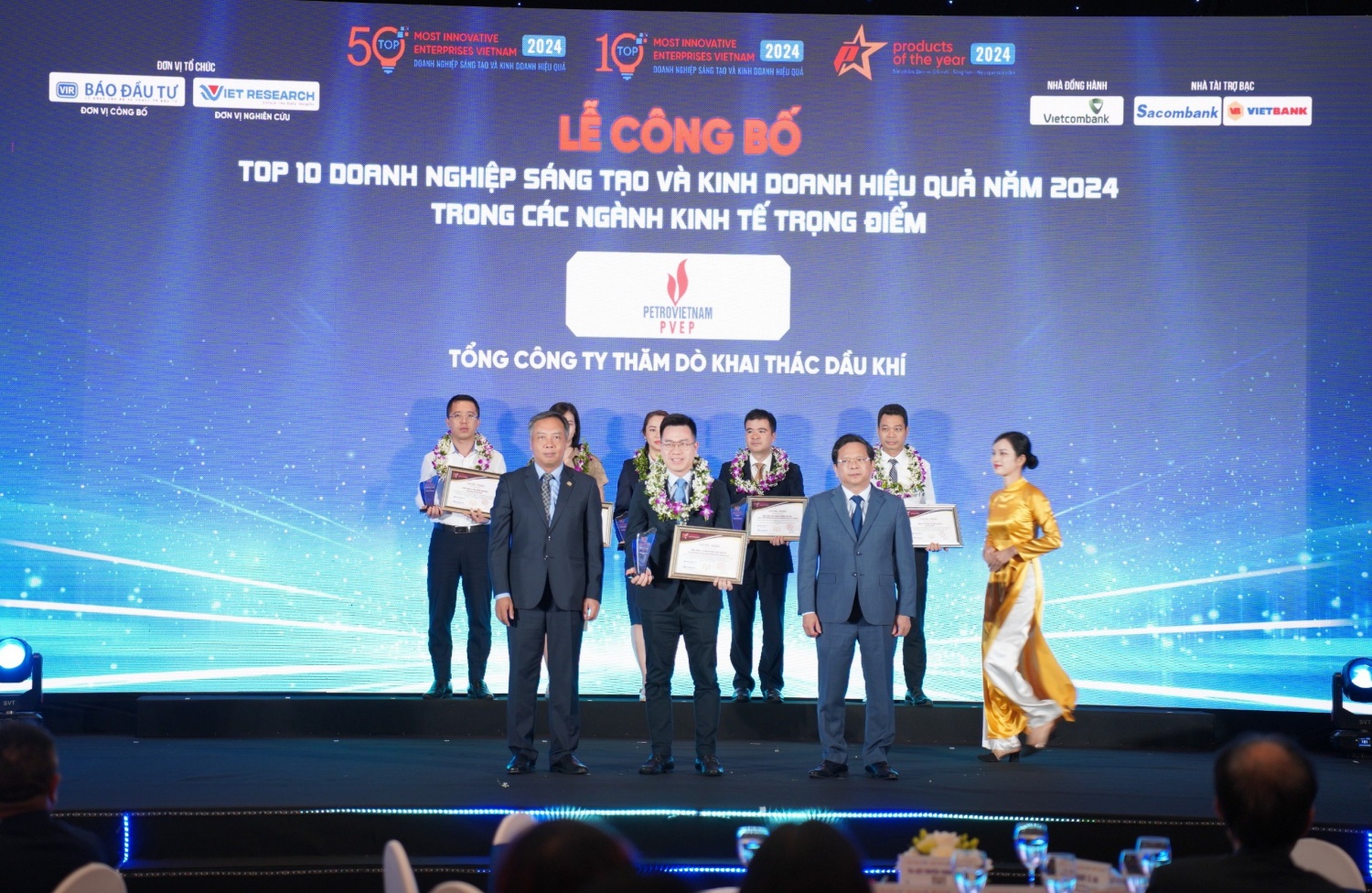 Tổng công ty Thăm dò Khai thác Dầu khí (PVEP) được vinh danh Top 10 Doanh nghiệp Sáng tạo và Kinh doanh hiệu quả năm 2024 trong các ngành kinh tế trọng điểm.