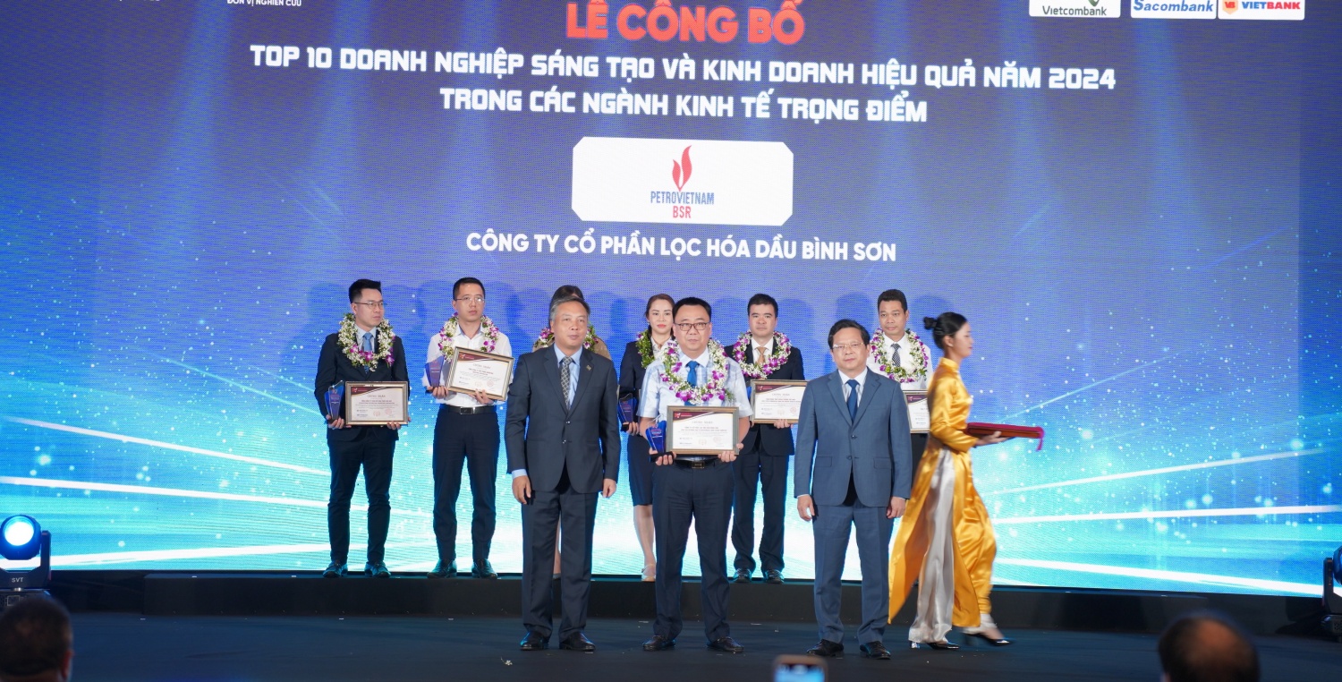 Công ty CP Lọc Hóa Dầu Bình Sơn được vinh danh trong Top 10 doanh nghiệp Sáng tạo và Kinh doanh hiệu quả Việt Nam trong các ngành kinh tế trọng điểm năm 2024.