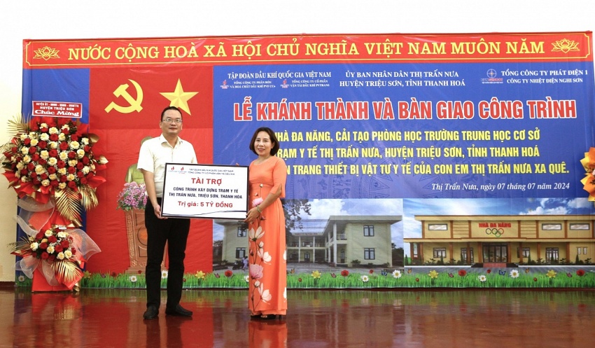Ngày 07/7/2024, tại Thanh Hóa, Tập đoàn Dầu khí Việt Nam (Petrovietnam), Tổng công ty Cổ phần Vận tải Dầu khí (PVTrans), Tổng công ty Phân bón và Hóa chất Dầu khí (PVFCCo) đã phối hợp cùng Ủy ban nhân dân thị trấn Nưa tổ chức khánh thành và bàn giao công trình Nhà đa năng, cải tạo phòng học Trường THCS và Trạm y tế thị trấn Nưa, huyện Triệu Sơn, tỉnh Thanh Hóa.