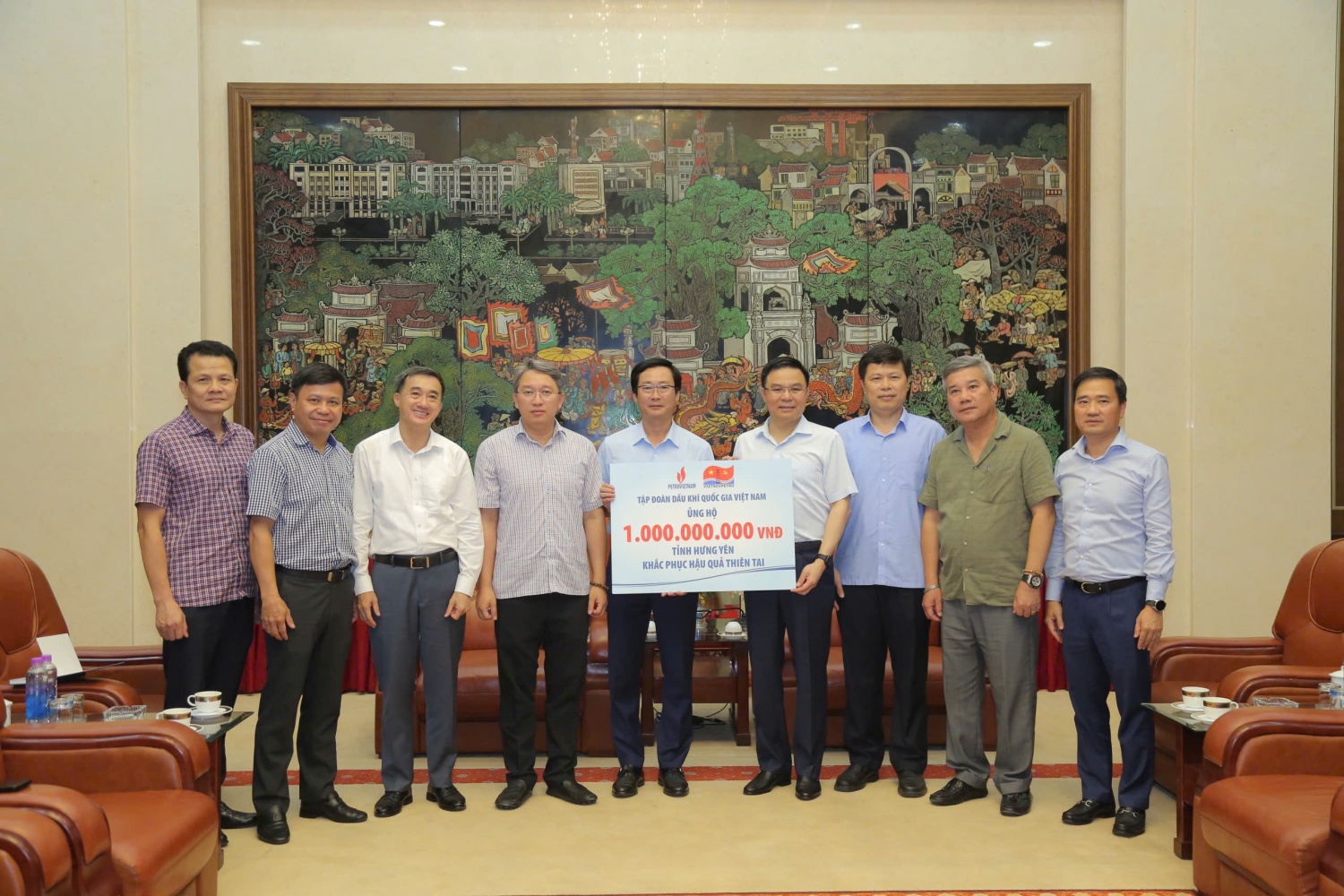 Đoàn công tác đã tới thăm hỏi, động viên, trao quà hỗ trợ cho Đảng bộ, chính quyền và bà con nhân dân tỉnh Hưng Yên nói chung và các huyện Văn Giang, Khoái Châu, Kim Động nói riêng. Thay mặt tập thể người lao động ngành Dầu khí, Chủ tịch HĐTV Petrovietnam Lê Mạnh Hùng chia sẻ với những thiệt hại lớn mà nhân dân tỉnh Hưng Yên đã, đang phải gánh chịu do bão số 3 gây ra. Đồng thời, Petrovietnam trao ủng hộ 4 tỷ đồng nhằm hỗ trợ Đảng bộ, chính quyền, nhân dân tỉnh Hưng Yên khắc phục khó khăn, thiệt hại.