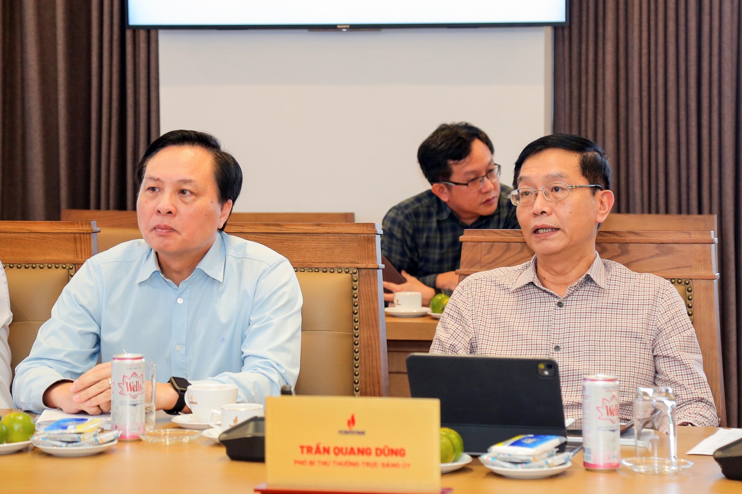 Tham dự buổi làm việc về phía Petrovietnam có đồng chí Trần Quang Dũng, Phó Bí thư thường trực Đảng ủy; đồng chí Bùi Minh Tiến, Thành viên HĐTV; đồng chí Đỗ Chí Thanh, Phó Tổng Giám đốc; cùng đại diện lãnh đạo các Ban chuyên môn Tập đoàn.