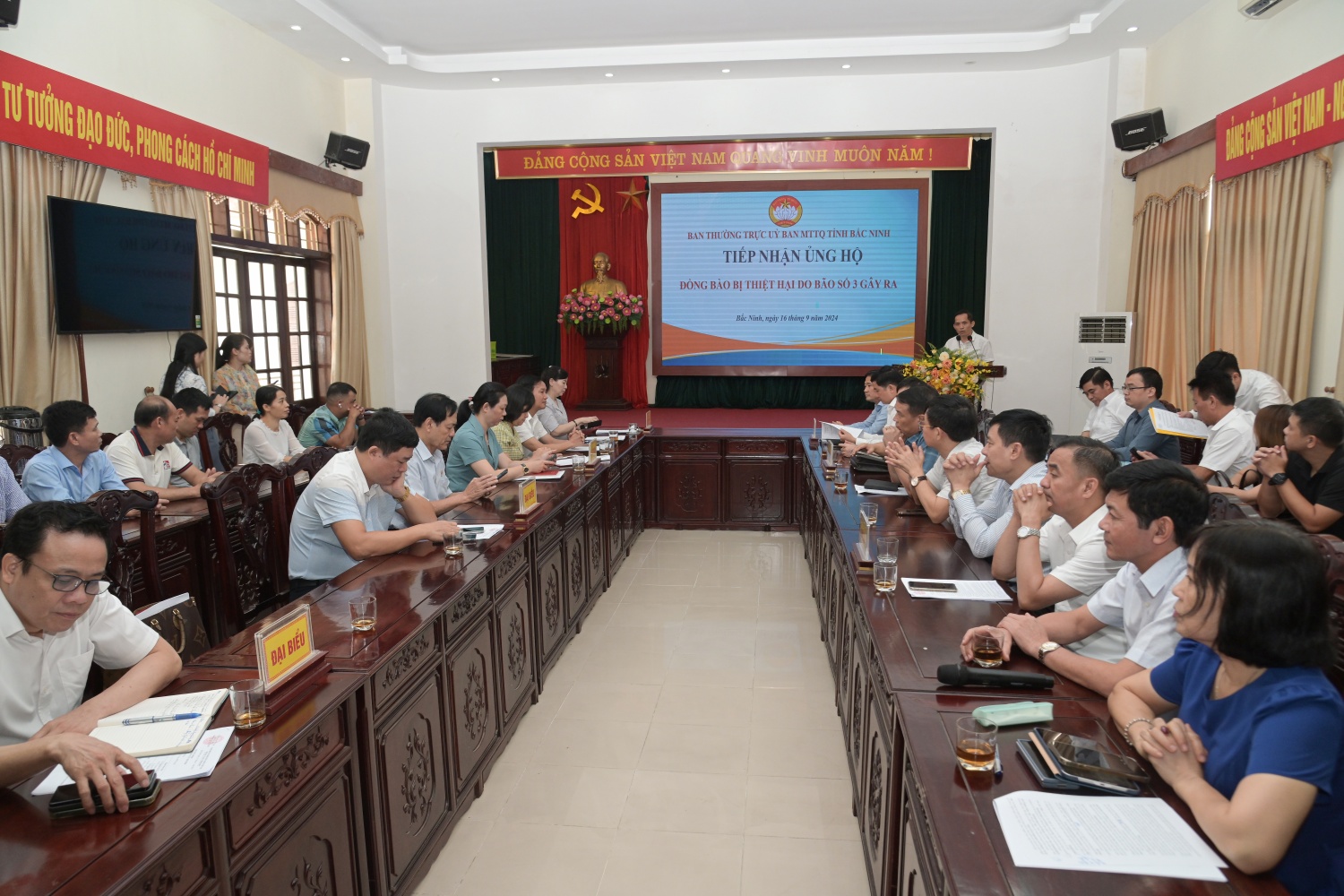 Để khắc phục những thiệt hại trên, các đồng chí Bí thư Tỉnh ủy, Thường trực Tỉnh ủy, HĐND, UBND, UBMTTQ Việt Nam tỉnh và các đoàn thể đã huy động nhiều nguồn lực bao gồm: công an, quân đội, thanh niên,… tham gia ứng phó với thiên tai; đồng thời tổ chức các đoàn kiểm tra công tác triển khai ứng phó với bão, lũ và tổ chức thăm hỏi, tặng quà cho nhân dân các địa phương bị ảnh hưởng bởi. Bên cạnh đó, UBMTTQ Việt Nam tỉnh Bắc Ninh hỗ trợ nhân dân khu vực bị ảnh hưởng bởi thiên tai phải di dời người, tài sản đến nơi an toàn, tuyên truyền vận động nhân dân hỗ trợ lương thực, thực phẩm cho lực lượng quân đội, công an, dân quân tự vệ để tham gia hộ đê, tuần tra canh gác đê, thu dọn cây cối, công trình đổ vỡ; thông suốt các tuyến đường.