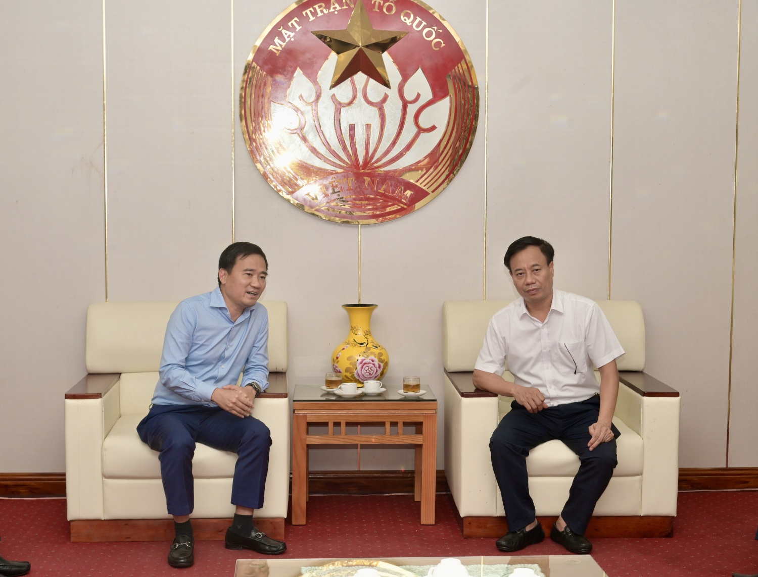 Phó Chủ tịch CĐ DKVN Vũ Anh Tuấn trao đổi với lãnh đạo UBMTTQ Việt Nam tỉnh Bắc Giang về công tác phục hậu quả thiên tai