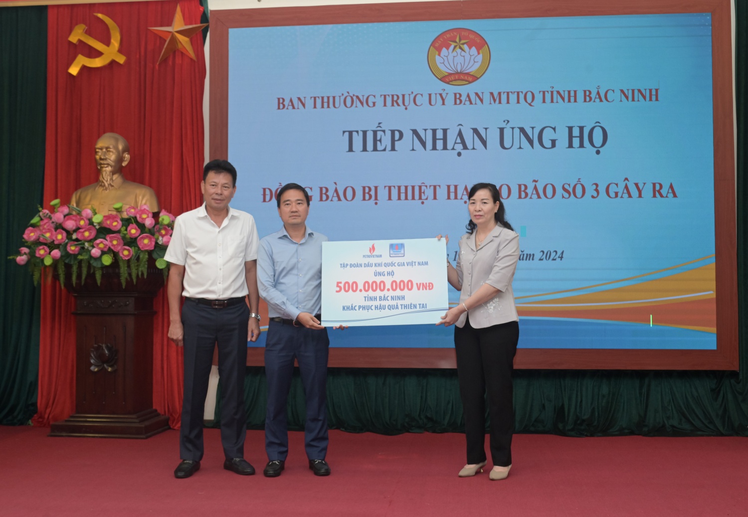 Cơn bão số 3 đã khiến nhiều địa phương chịu thiệt hại nặng nề về con người, cơ sở vật chất, giao thông, nông nghiệp, công nghiệp,… Thay mặt CBCNV, người lao động Petrovietnam đồng chí Vũ Anh Tuấn chia sẻ với những mất mát mà Đảng bộ, chính quyền, nhân dân tỉnh Bắc Ninh và Bắc Giang gặp phải do ảnh hưởng của cơn bão số 3.