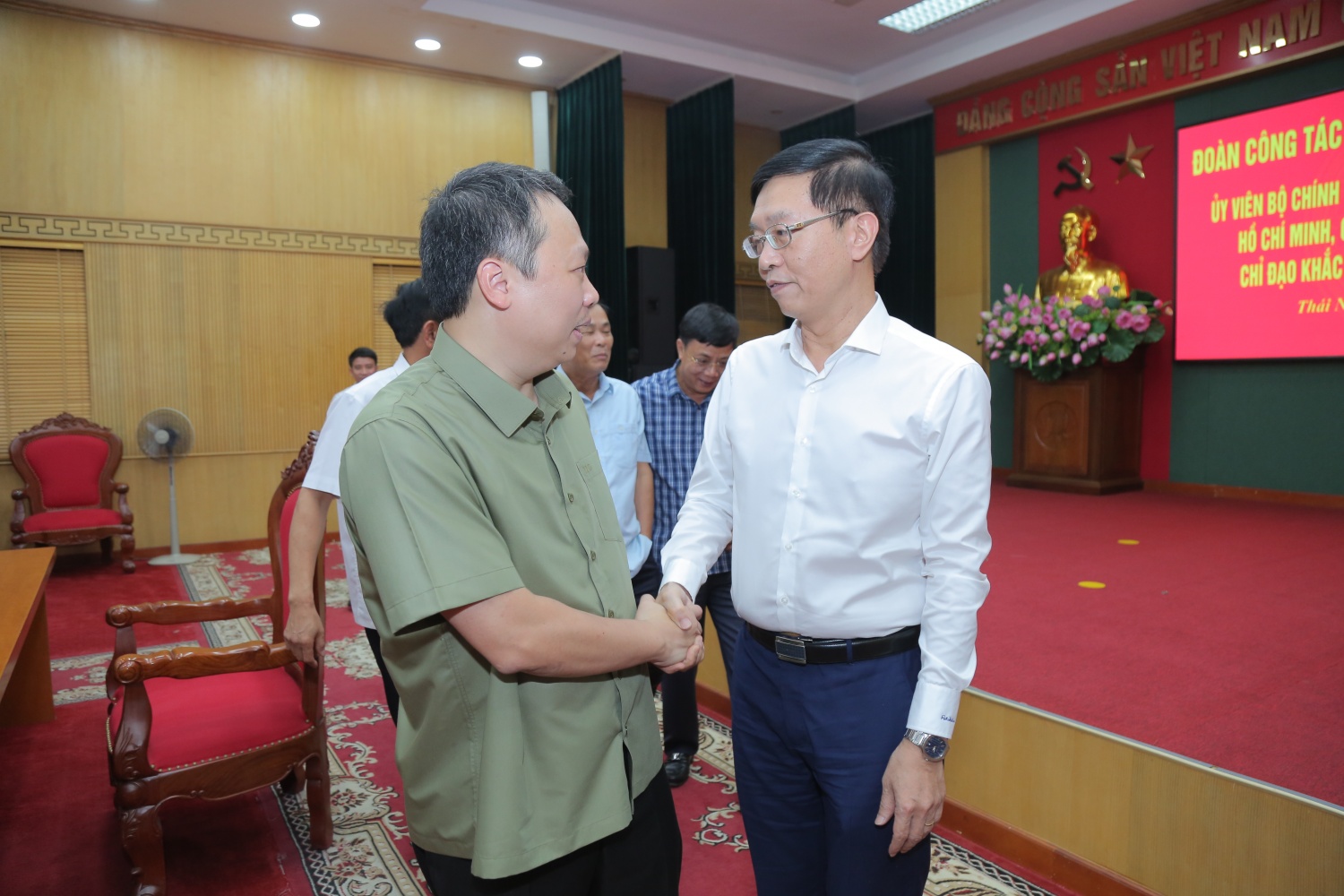 Đồng chí Nguyễn Xuân Thắng và đại diện đoàn công tác trao ủng hộ hỗ trợ Đảng bộ, chính quyền, nhân dân tỉnh Thái Nguyên